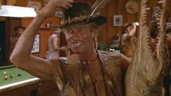 Американська журналістка приїжджає в глибинку Австралії, і відважний хлопець, мисливець на крокодилів, знайомить її з місцевими визначними пам'ятками. Вона ж запрошує його до Нью-Йорка, і там відважний мисливець потрапляє в невідомі йому неонові джунглі, де кожний його крок озивається гомеричним реготом глядачів.